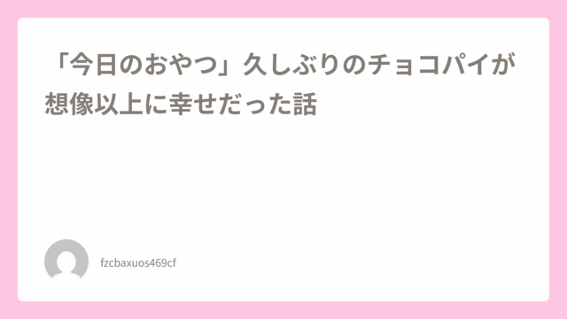 「今日のおやつ」久しぶりのチョコパイが想像以上に幸せだった話