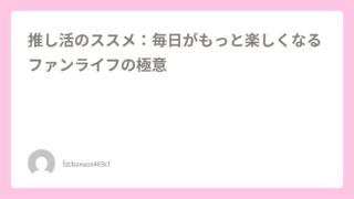 推し活のススメ:毎日がもっと楽しくなるファンライフの極意