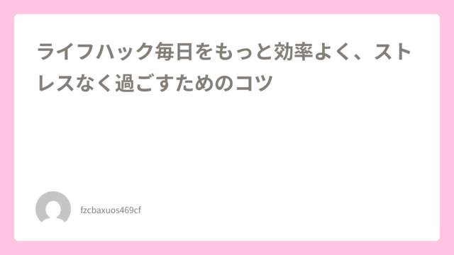 毎日をもっと効率よく、ストレスなく過ごすためのコツ