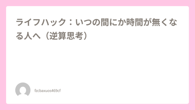 ライフハック:いつの間にか時間が無くなる人へ(逆算思考)