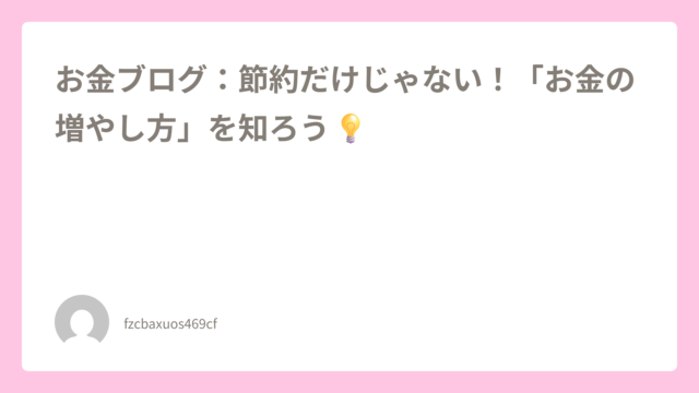 お金ブログ:節約だけじゃない!「お金の増やし方」を知ろう💡